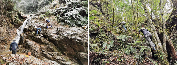 沿泥石流溝順溝而上現場勘察工作