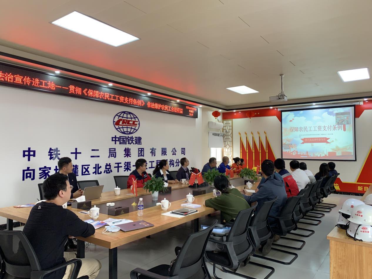 本次活動采取主會場和分會場相結合的方式,全面覆蓋于各標段的參建單位和農民工,邀請法律顧問黃佰韓律師對《農民工工資支付條例》進行全面解讀。黃律師圍繞全力做好保障農民工工資支付工作,指導建設工程單位規范用工,保障農民工按時足額獲得工資,維護農民工權益,構建和諧穩定的勞工關系等內容,現場就農民工關心的實際問題進行了互動解答。同時,活動還通過觀看普法視頻、發放宣傳資料、張貼海報等形式,積極引導農民工增強法律意識,筑牢法治思維。
