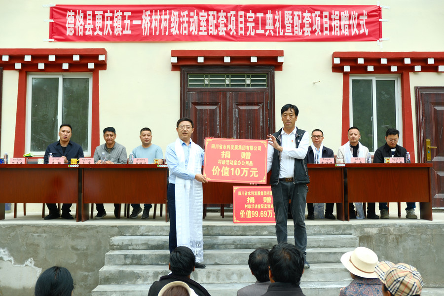 在儀式現場,向仕春向五一橋村村民轉達了集團黨委書記、董事長鐘杰對大家的牽掛,并表示集團將認真落實水利廳黨組的要求,積極履行省屬國有企業的政治責任和社會責任,按照建設鄉村振興示范村的標準傾力幫扶五一橋村。希望建設公司派駐五一橋村幫扶干部萬喜云要盡快適應新環境,熟悉掌握任務要求,為幫扶工作扎實有效推進夯實基礎。德格縣更慶鎮黨委書記友康表示,省水發集團傾情幫扶民族地區,充分彰顯了省屬國企的社會責任擔當。