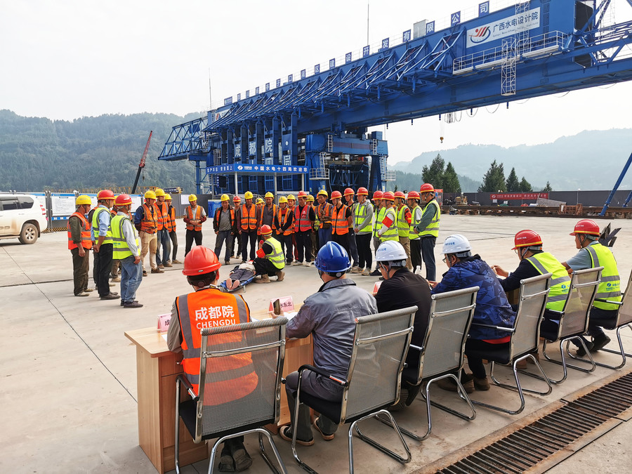 本次演練在唐家溝渡槽造槽機始發(fā)平臺進行,現(xiàn)場設置隧洞內(nèi)發(fā)生火災應急疏散,講解煙霧中毒施救要點及注意事項,利用假人實操心肺復蘇術現(xiàn)場急救以及如何使用消防器材撲滅火災等三個場景。通過演練,作業(yè)人員掌握了隧洞發(fā)生火災后的正確逃生方式、了解掌握心肺復蘇術現(xiàn)場急救的方法,學會滅火器材選取和正確使用。活動以點帶面,提升了參演人員檢查消除火災隱患、組織撲救火災、人員疏散逃生和自救互救能力。下一步,項目部將以消防安全月為契機,緊緊圍繞活動主題,持續(xù)深入開展專題培訓、警示教育、專項檢查等活動,構建群防群治安全網(wǎng),真正統(tǒng)籌好生產(chǎn)和安全,為加快助推亭子口灌區(qū)一期工程建設保駕護航。
