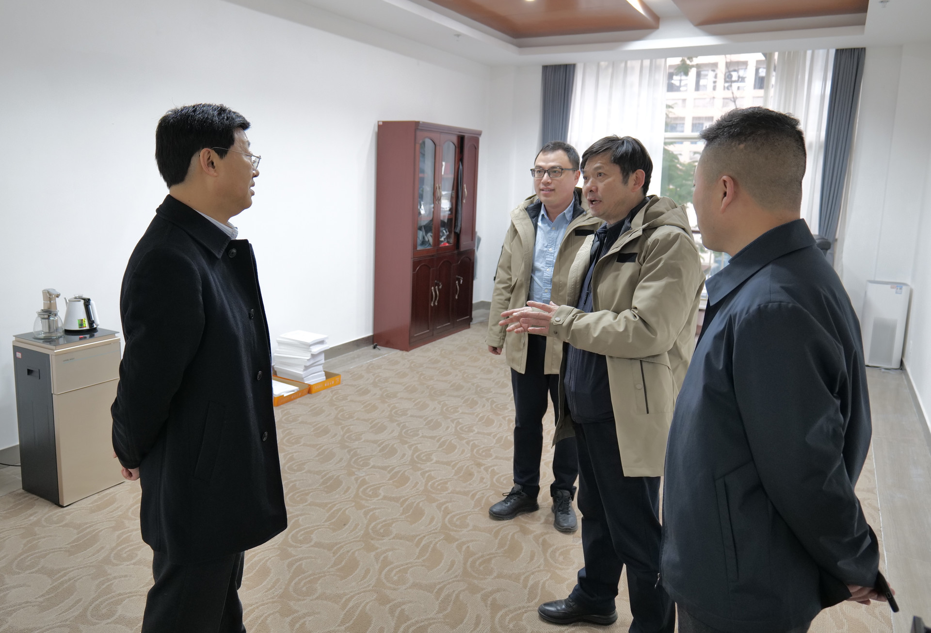 向仕春一行在辦公區(qū)與職工進行了親切交流,了解他們的工作、學(xué)習(xí)、生活情況,向困難職工送去了深切的關(guān)懷與慰問。