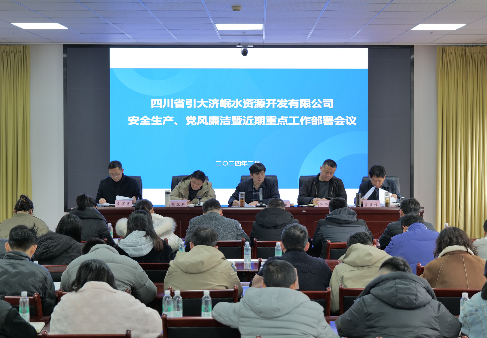 2月6日下午,引大濟岷公司召開會議傳達集團2024年工作研討會精神,安排部署節日安全生產和值班值守工作,開展節前廉潔警示教育,動員各部門和廣大干部職工牢記使命、團結奮斗,勇挑重擔、真抓實干,實現2024年開工建設目標,書寫引大濟岷工程建設新篇章。黨委副書記、總經理張開勇主持會議。