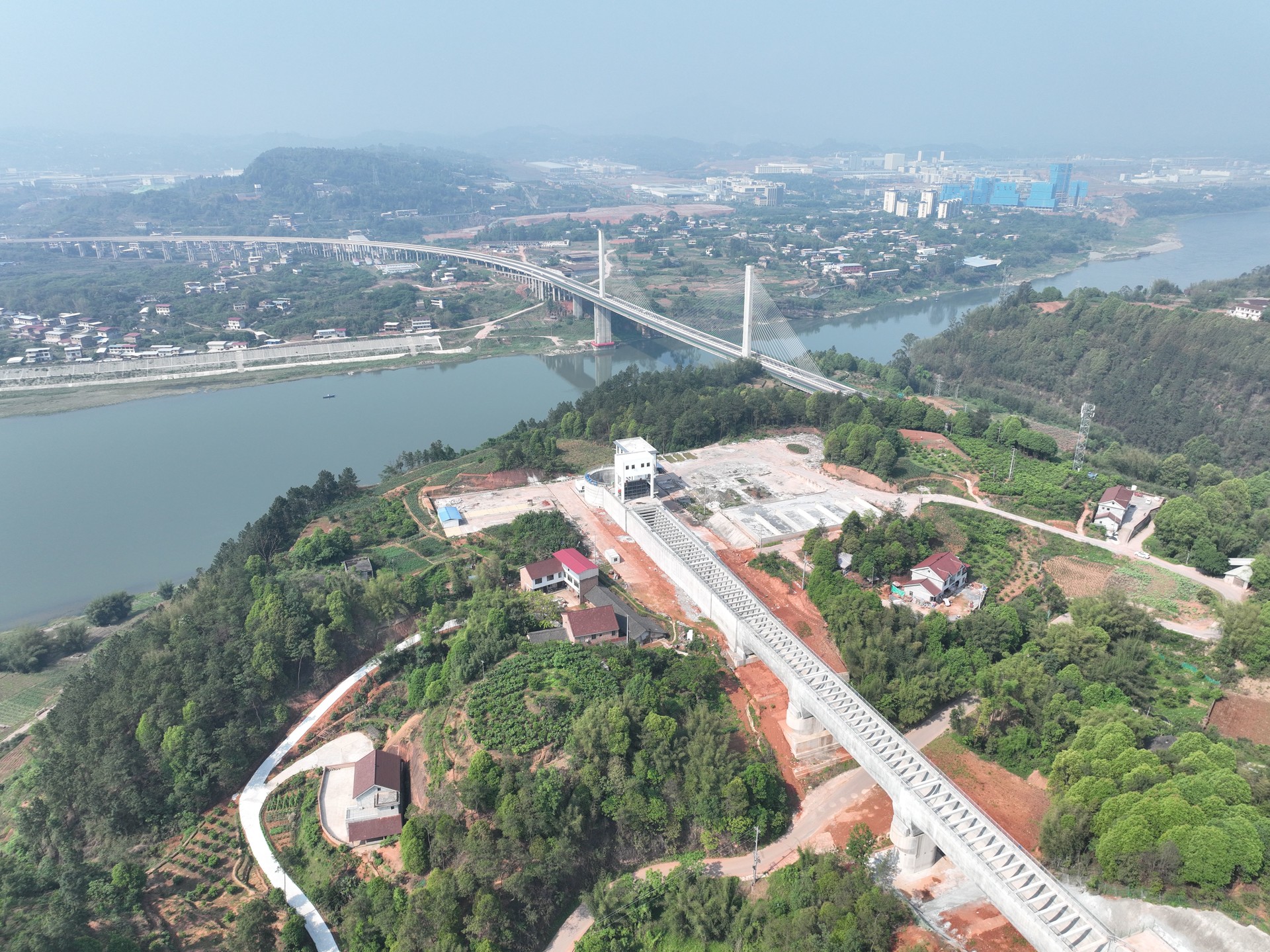 貓兒沱江底隧洞接收井航拍圖