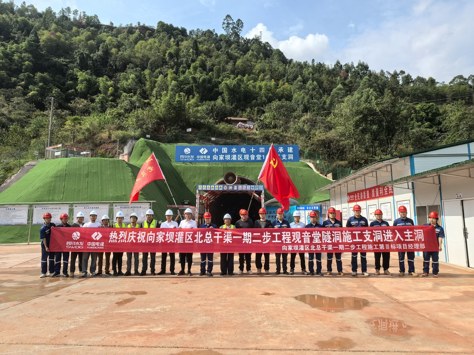 10月14日,向家壩灌區北總干渠一期二步工程施工第Ⅲ標段觀音堂1#施工支洞成功貫通進入主洞開挖。